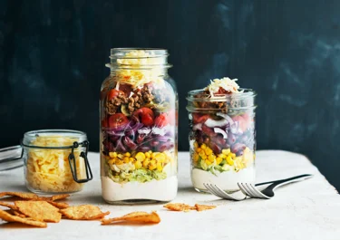 Dieser mexikanische Salat ist einfach zuzubereiten und schmeckt einfach unglaublich. Serviere ihn in Schichten in einem Glasgefäß, um einen spektakulären Effekt zu erzielen, und passe die Proportionen und den Inhalt nach Geschmack an. Der Salat kann außerdem in nur einer halben Stunde zubereitet werden.