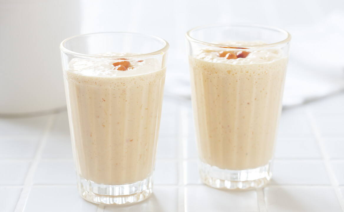 Protein-Milch ist ein cremiges Getränk, das schnell und einfach zubereitet werden kann, egal zu welcher Tageszeit. Dieses Rezept für Protein-Milch enthält Sanddorn, auch bekannt als die Superbeere der Nordländer. Sie hat einen einzigartig säuerlichen Geschmack und eine leuchtend orange Farbe, die der Milch und dem cremigen Quark des Rezepts eine erfrischende Note verleiht.