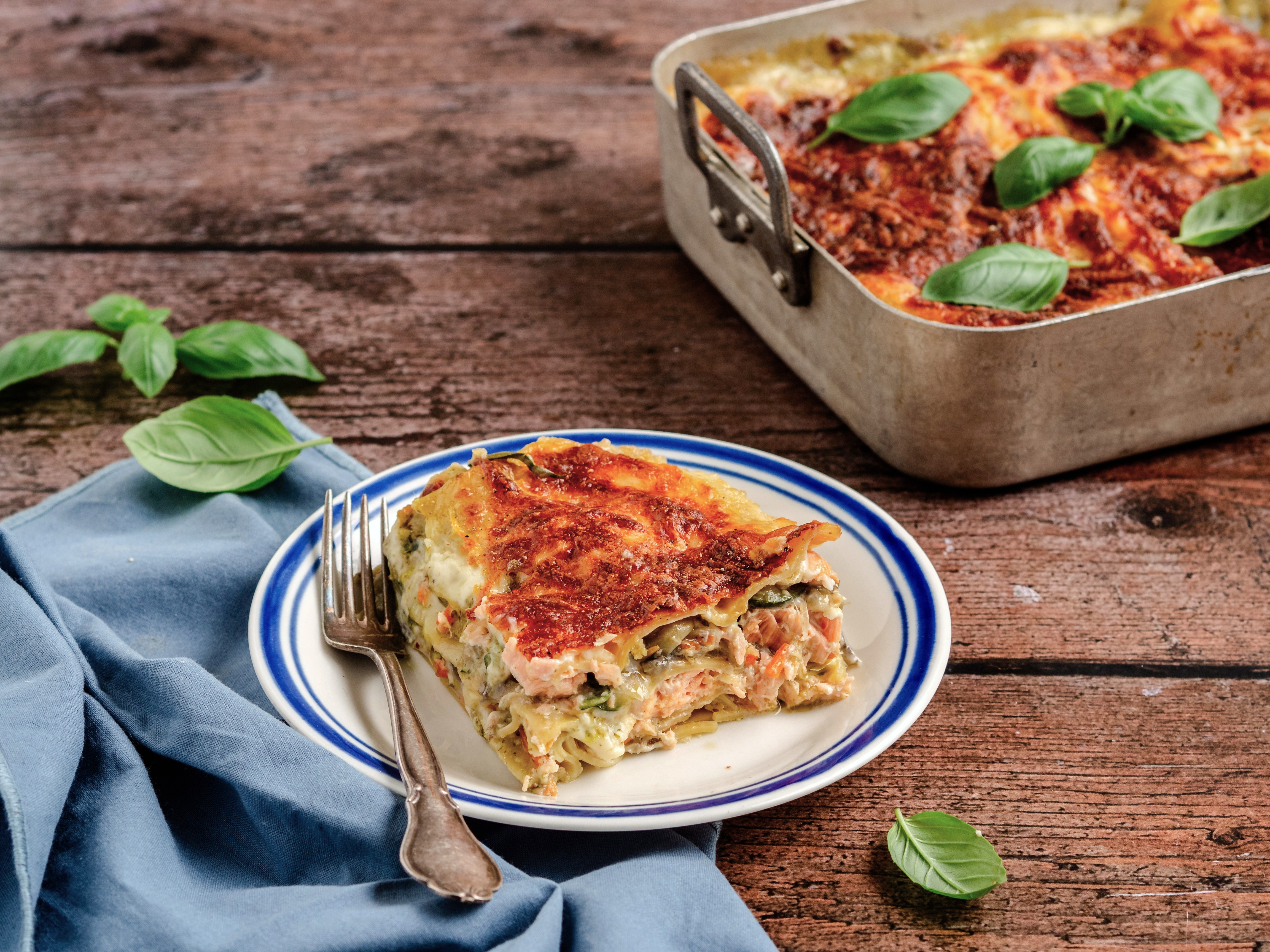 Unser köstliches Lachs-Lasagne-Rezept kombiniert grünes Pesto und zarten Lachs mit klassischen Lasagneblättern, Bechamelsoße und Käse. Dieses verlockende Gericht ist eine harmonische Mischung aus Lachs, frischem Julienne-Gemüse und Lasagneblättern, umhüllt von einer cremigen Bechamelsoße mit Basilikum-Pesto und gekrönt von goldenem, geschmolzenem Mozzarella-Käse. Genieße die Aromen dieser Version der klassischen Lasagne, die sich perfekt für ein leckeres Abendessen und unvergessliche Feste eignet.