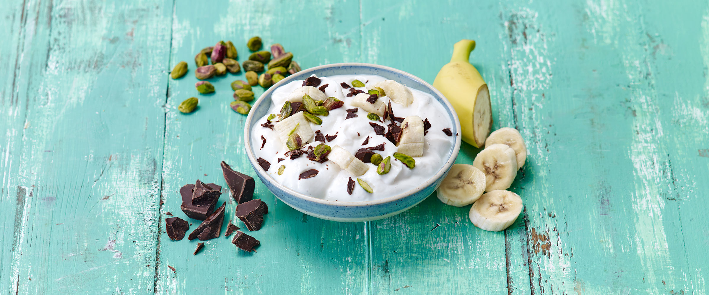 Mit unserem köstlichen Obst-Mandel-Topping ergänzt du den Skyr optimal. Die Banane verleiht ihm einen cremigen Kick, während die Mandeln für den begehrten Crunch sorgen und jeden Löffel zu einer Geschmacksreise machen.