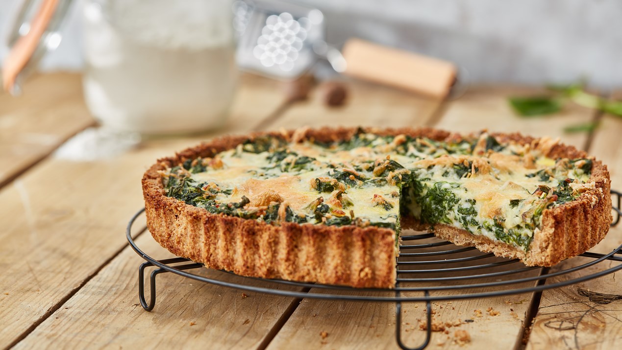 Spinat-Quiche ist französisches Picknick-Essen vom Feinsten. Die Kombination aus buttrigem, mürbem Teig und einer reichhaltigen Füllung mit Käse, Eiern und bittersüßem Spinat macht diese Quiche unglaublich lecker. Sie wird mit wärmender Muskatnuss gewürzt, und die leckere Füllung hat ein intensives Aroma. Die Quiche ist sättigend und wohlschmeckend, ohne dabei schwer zu sein. Das macht sie zu einem beliebten Picknick-Rezept.