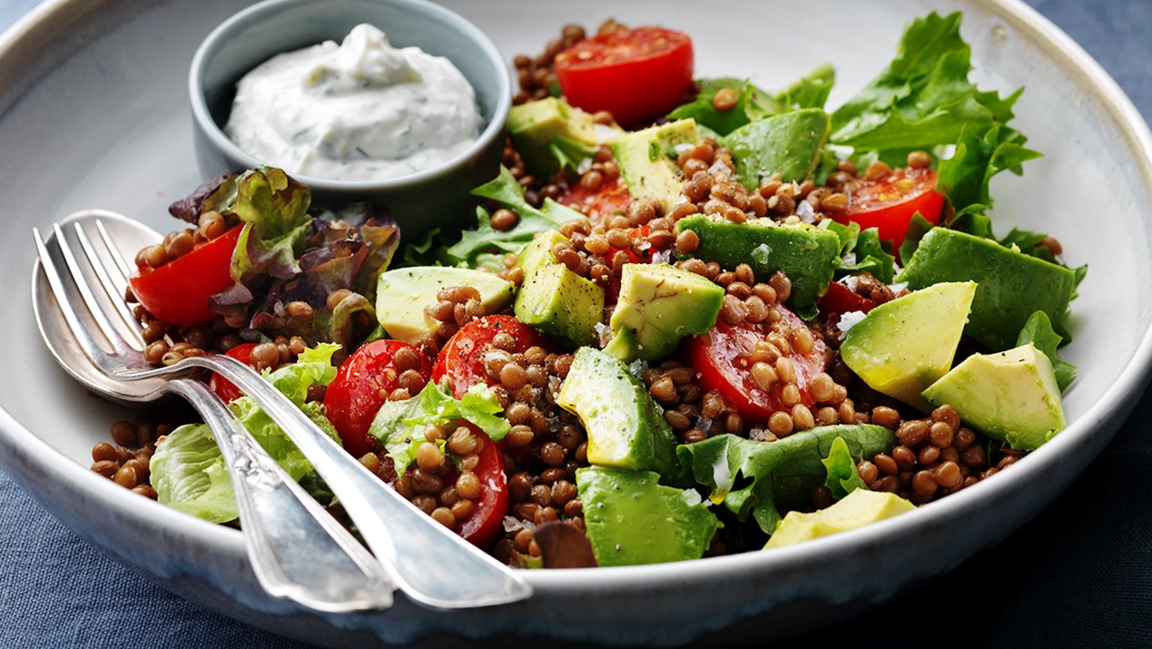 Wenn es darum geht, einen lebendigen und erfrischenden Sommersalat zuzubereiten, ist Avocado die richtige Wahl. Dieses Rezept kombiniert die weiche, cremige Konsistenz der Avocado mit den erdigen Noten der grünen Linsen. Die Kirschtomaten bringen Farbe und eine saftige Säure in den Salat, während ein Hauch Zitronensaft für eine pikante Note sorgt. Der Sommersalat mit Avocado und Linsen wird mit einem spritzigen Schmand-Zitronen-Dressing serviert, das alle Aromen miteinander verbindet. Die Zubereitung dieses Sommersalats mit Avocado dauert nur 30 Minuten, und er ist daher die ideale Beilage für hektische Tage, an denen du trotzdem etwas Leckeres und Frisches essen möchtest. Er ist die perfekte Verkörperung des Sommers – frisch, lebendig und absolut köstlich.