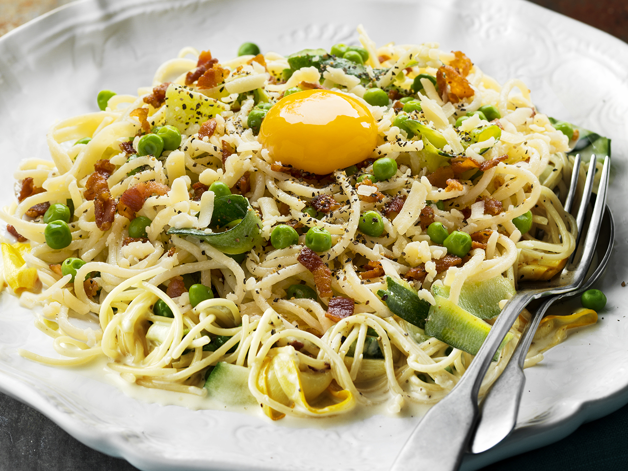 Carbonara ist einer der bekanntesten, köstlichen italienischen Klassiker. Sie stammt ursprünglich aus Rom und besteht aus einer cremigen Soße, die traditionell ohne Sahne zubereitet wird und stattdessen auf einer Kombination aus Eiern, Parmesan und Pecorino Romano basiert. Knuspriger Pancetta oder Guanciale sorgen für einen herzhaften, salzigen Biss, der einen schönen Kontrast zu der Soße bildet. Obwohl es an sich ein Klassiker ist, gibt es verschiedene Versionen mit spielerischen, geschmackvollen Ergänzungen.