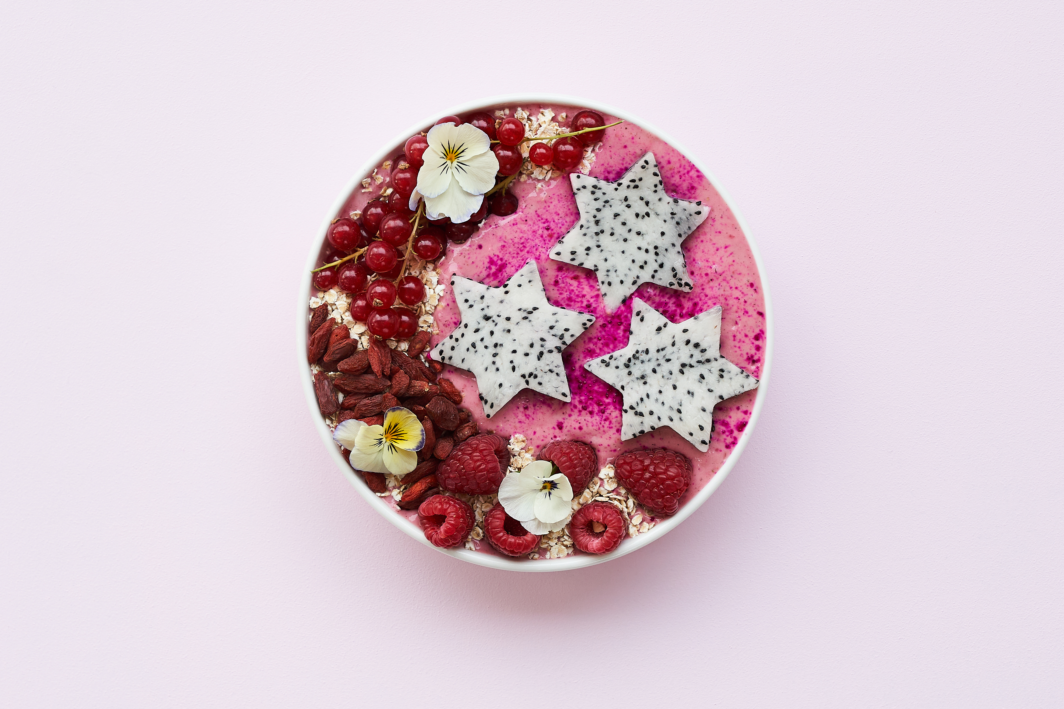 Am besten fängt man mit Obst und Beeren an. Diese köstlichen Zutaten können sowohl für die Basis als auch als farbenfrohe Toppings verwendet werden, die den Bowls zusätzlichen Geschmack verleihen.