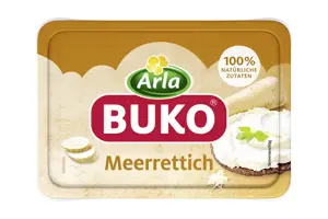 Frischkäse, 6,3% Meerrettich, Rapsöl, Speisesalz, Zucker, Säuerungsmittel: Milchsäure