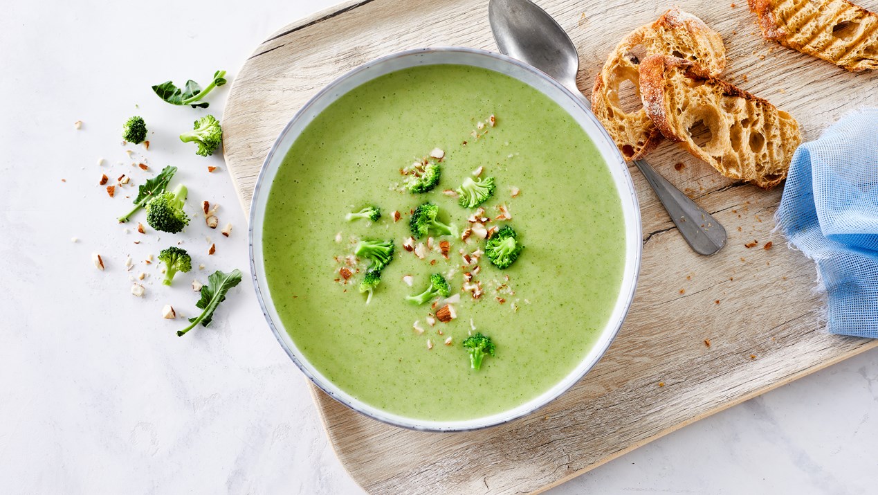 Kochsahne und Schmelzkäse machen diese köstliche Brokkolisuppe herrlich cremig. Unsere Suppe hat eine leuchtend grüne Farbe und einen milden, erdigen, pflanzlichen Geschmack. Zwiebel und Hühnerbrühe verleihen dem Gericht Tiefe und einen leichten Salzgeschmack. Der schmelzende Käse verleiht ihr eine wunderbar sämige Textur und Reichhaltigkeit, ohne dass du sie lange andicken musst. Dieses einfache und gesunde Gericht wird ganz sicher im Handumdrehen zum Liebling der Familie oder deiner Gäste!