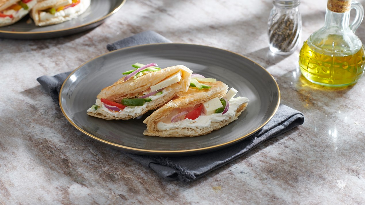 Eine Kombination aus frischem Gemüse, cremigem Labneh und mildem Paneer-Käse dient als Füllung eines knusprigen, leichten Paratha-Brots. Die Knackigkeit der Paprika, die erfrischende Kühle der Gurke und die Schärfe der Zwiebelscheiben, die durch die saftige und süße Frische der Tomate abgerundet werden, ergeben ein wahrhaft schmackhaftes Gericht. Der milde, feste Paneerkäse verleiht dem Sandwich Fülle, während das cremige und leicht säuerliche Labneh ein perfektes Gegengewicht zu den süßen und knackigen Aromen des Gemüses bildet. Dieses Paratha-Sandwich mit Labneh schmeckt perfekt zum Frühstück oder zum Abendessen.