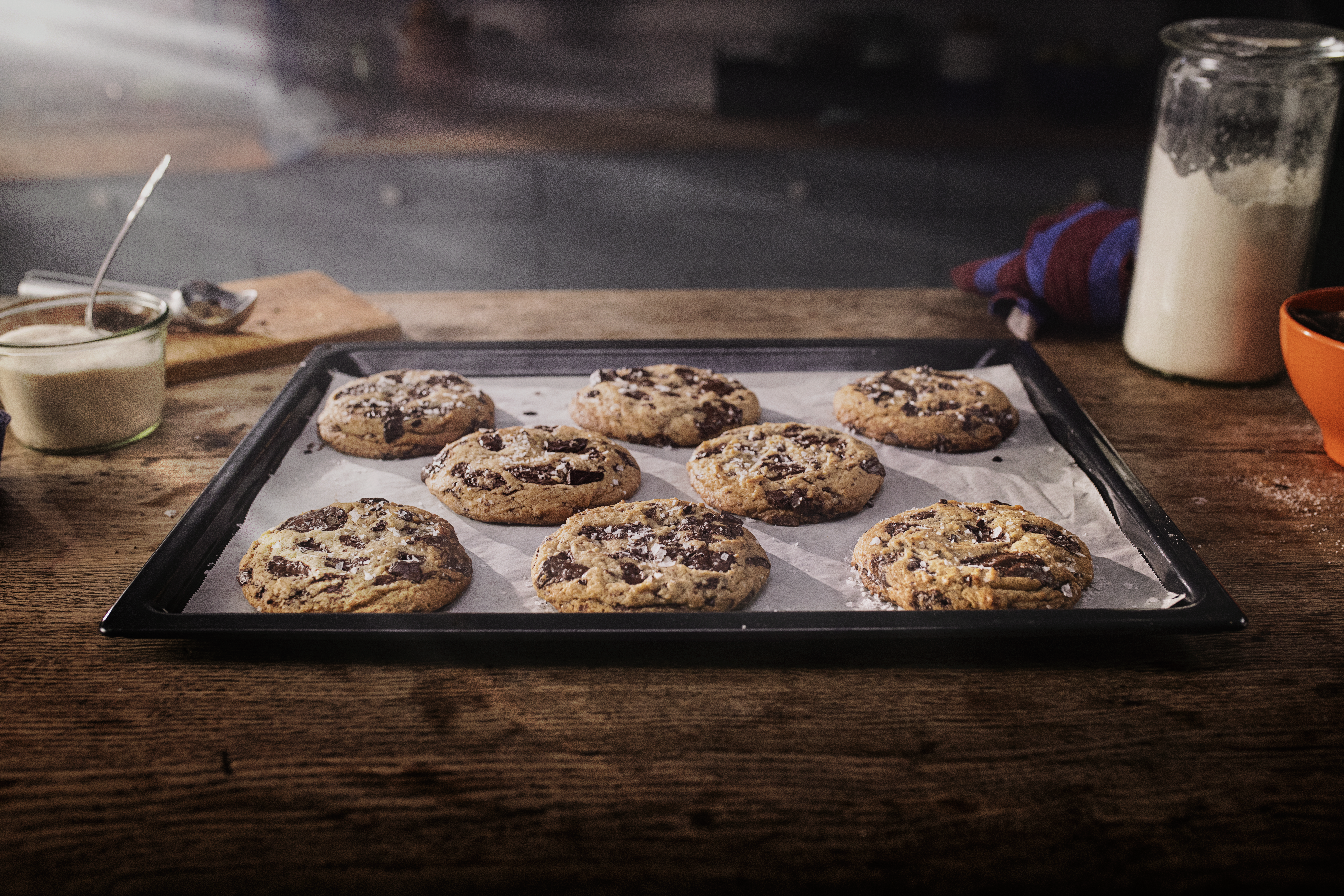 Kennst du jemanden, der dem unwiderstehlichen Charme von Chocolate Chip Cookies widerstehen kann? Wir auch nicht. Deshalb darf dieser köstliche Klassiker aus den USA natürlich auch an Weihnachten nicht fehlen. Mit unserem Cookie-Rezept wirst du in kürzester Zeit 16 herrliche, zartschmelzende und knusprige Naschereien zaubern können. Jeder einzelne Keks ist raffiniert verfeinert mit einer Prise Salzflocken, die dem Geschmack der Cookies eine einzigartige Note verleiht. Das Tolle dabei: Sie sind nicht nur unglaublich lecker, sondern auch superschnell zubereitet. So kannst du im Handumdrehen gleich mehrere Backbleche füllen und Verwandte, Freunde und Kolleg:innen beglücken – da wird über die Advents- und Weihnachtszeit garantiert nichts übrig bleiben!