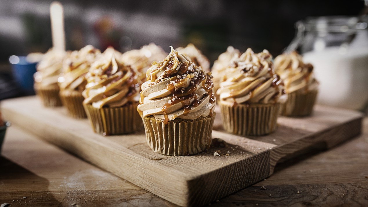 Cupcakes sind echte Allrounder, die mit ihren dekorativen Papierförmchen und kreativen Toppings zu jedem Anlass die perfekte Wahl sind. So passt diese schöne Cupcake-Idee wunderbar in die festliche Weihnachtszeit mit ihren gemütlichen Adventsnachmittagen und lauschigen Winterabenden. Durch das Topping mit einer Kombination aus zarter Kaffeebuttercreme, verführerischer Karamellsauce und knusprigen Nüssen schmecken sie nicht nur umwerfend, sondern sind ein absoluter Hingucker. So schön, dass man fast gar nicht hineinbeißen möchte. Doch der unwiderstehliche Duft lässt einen nur für einen kurzen Moment zögern. Verwöhne dich und deine Liebsten an den Feiertagen mit diesem herrlich leichten Rezept, das jede Menge Genuss und winterliche Freude schenkt.