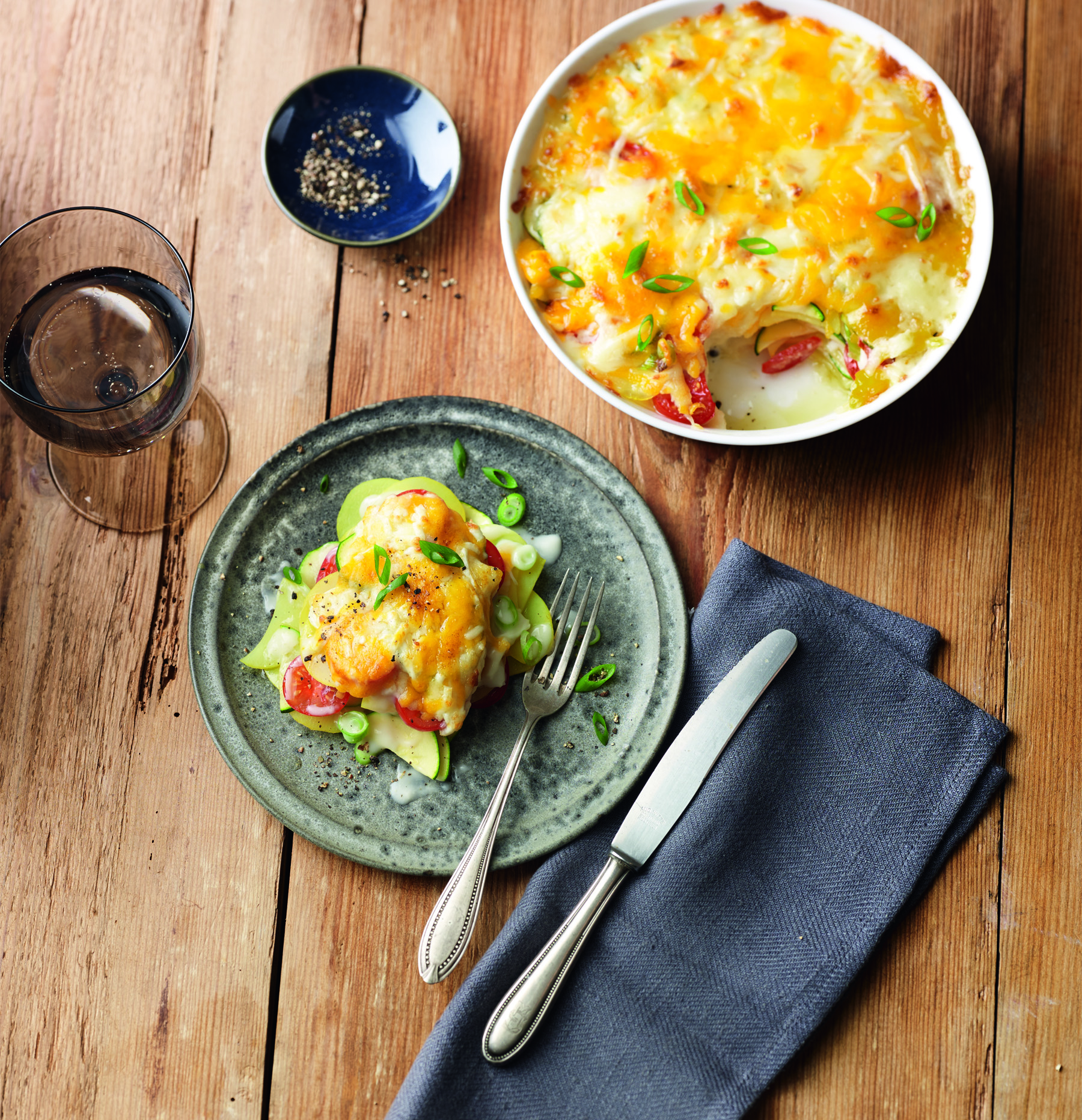 Kartoffelauflauf mit Zucchini und Kirschtomaten mit Arla Finello® Ofenkäse