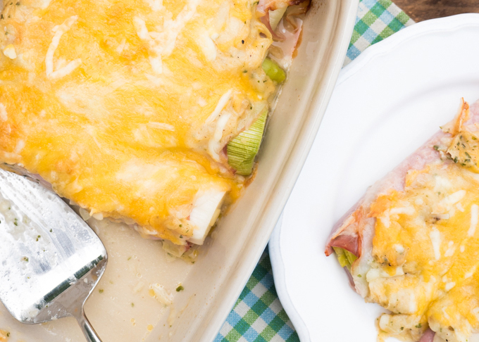 Überbackene Low Carb Schinken-Lauch-Röllchen mit Arla Finello® Ofenkäse