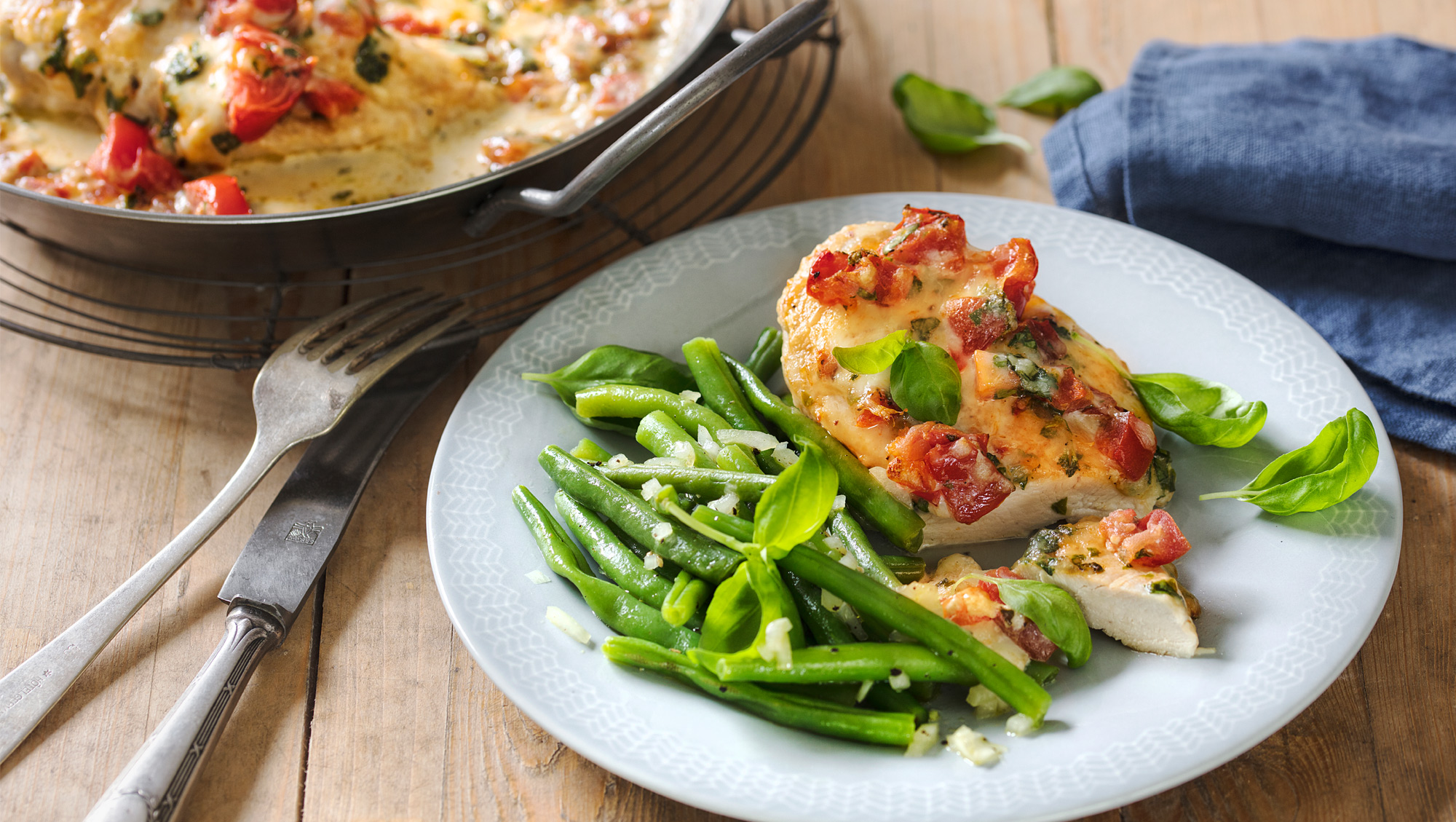 Gratinierte Hähnchenbrust mit Bohnensalat mit Arla Finello® Ofenkäse