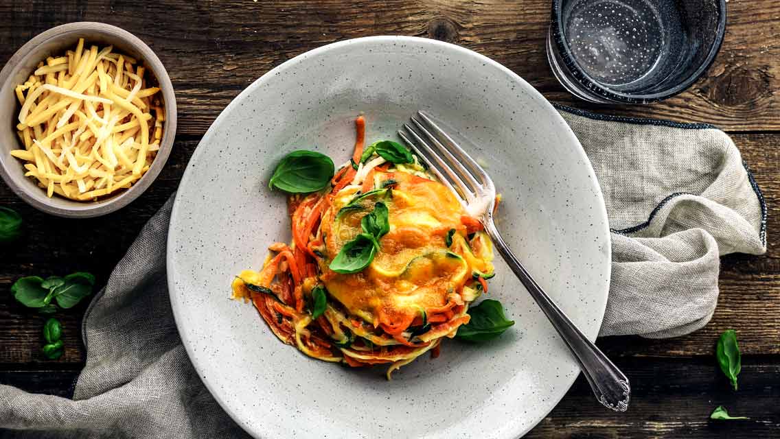 Überbackene Zucchini- und Möhrennester