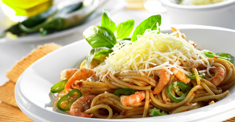 Spaghetti mit Shrimps und rotem Pesto