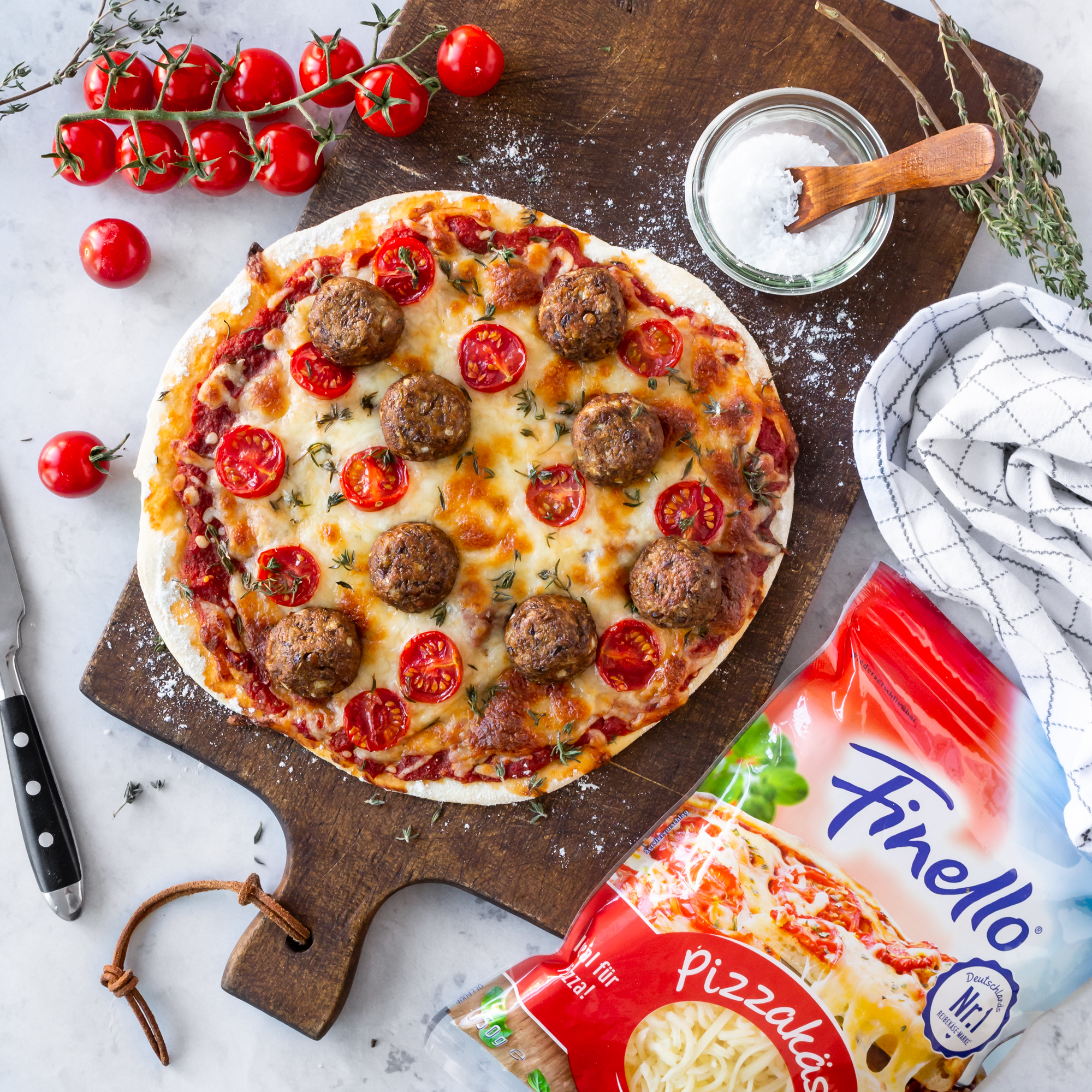 VEGETARISCHE MEATBALLPIZZA MIT VEGANEN HACKBÄLLCHEN von Nicest Things