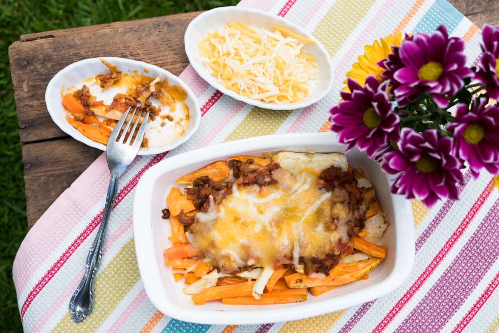 Überbackene Low Carb Gemüsepommes mit Hackfleisch und Arla Finello® Ofenkäse
