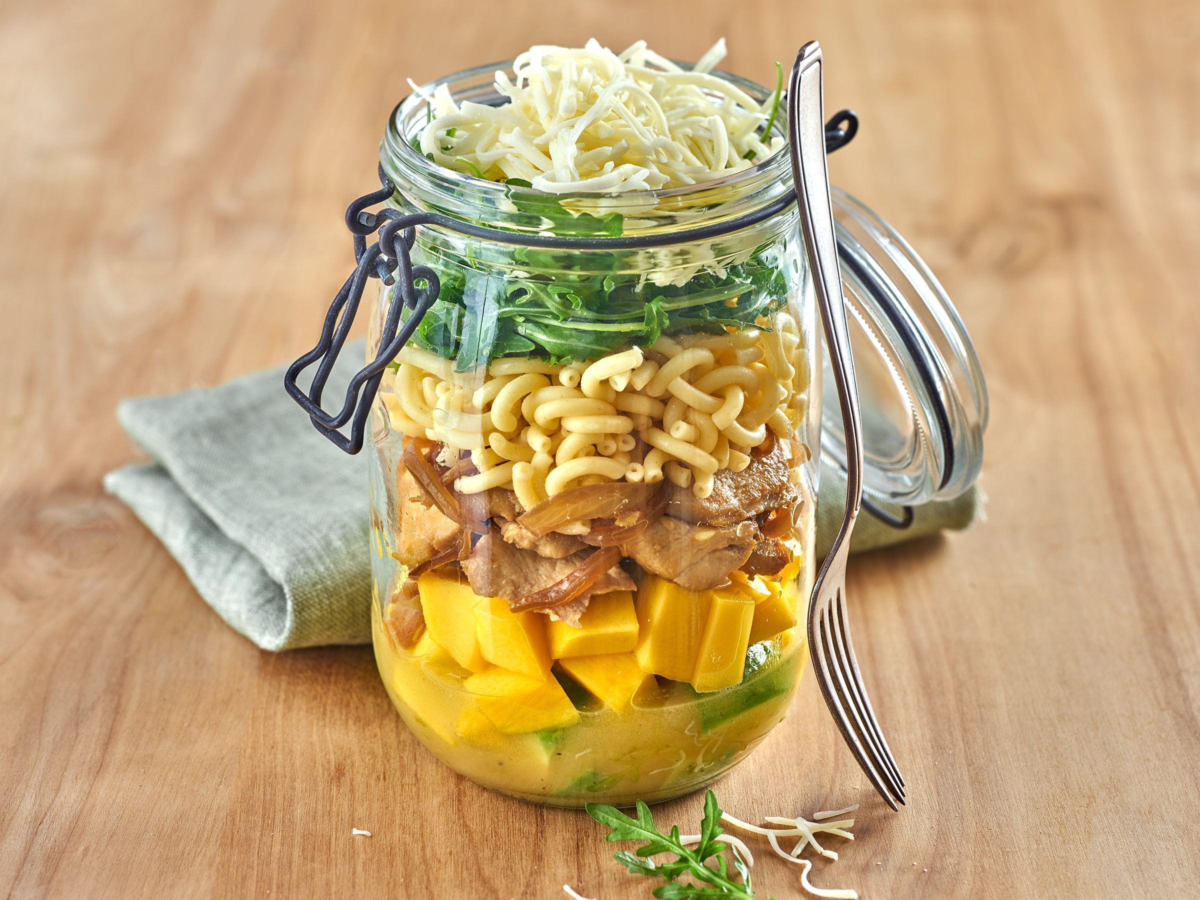 Bürosalat mit Hähnchen und Mango