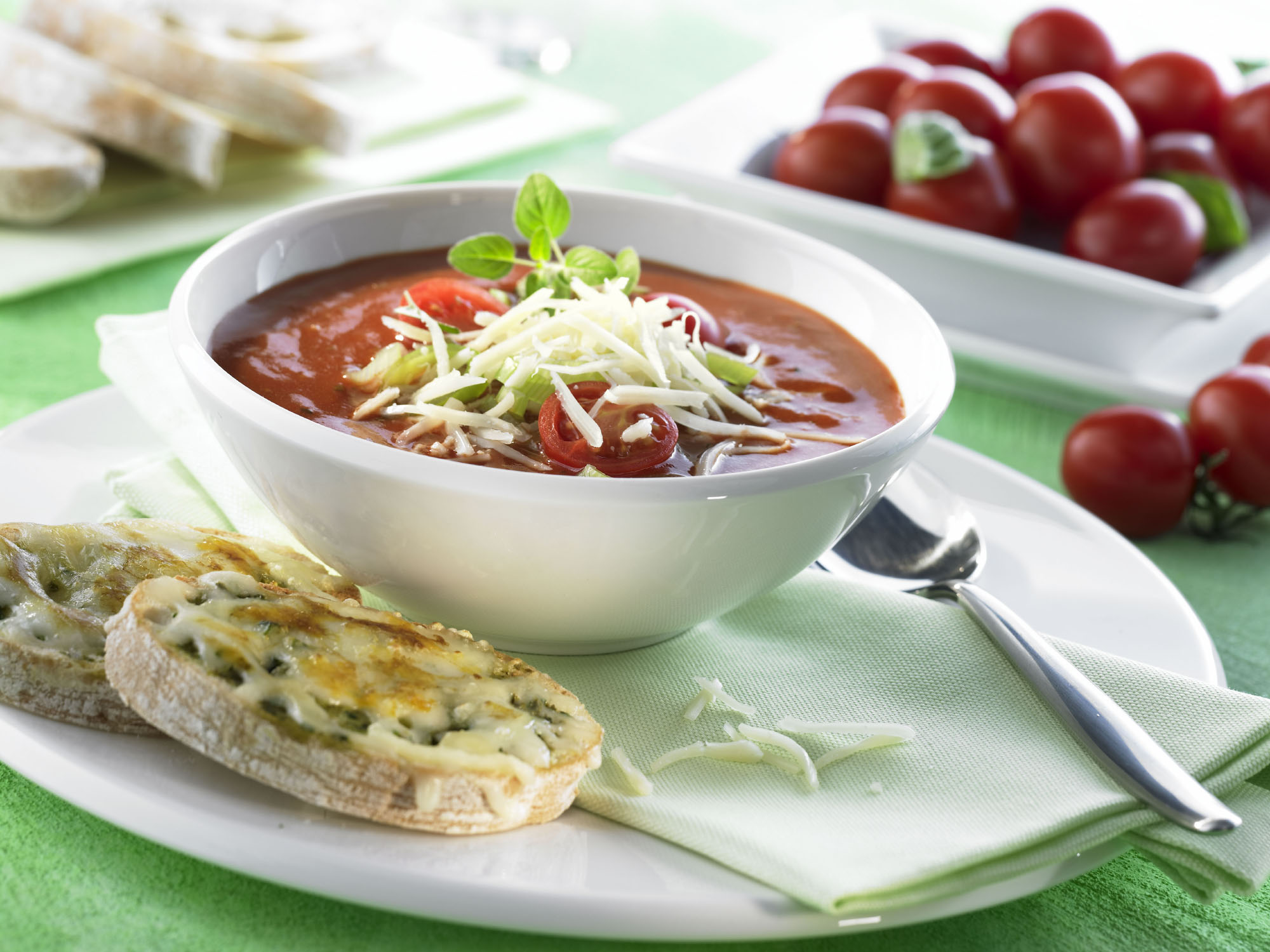 Kirschtomatensuppe mit Pestokrüstchen