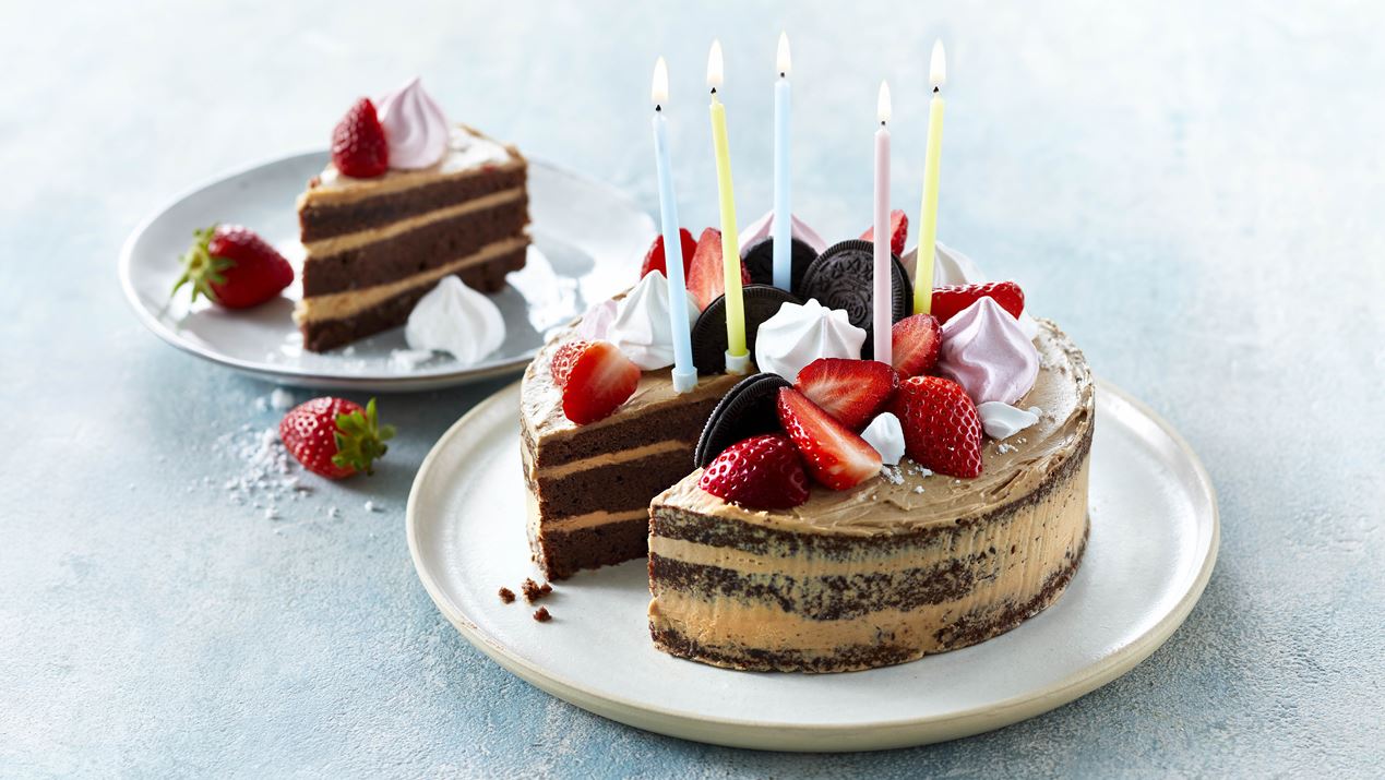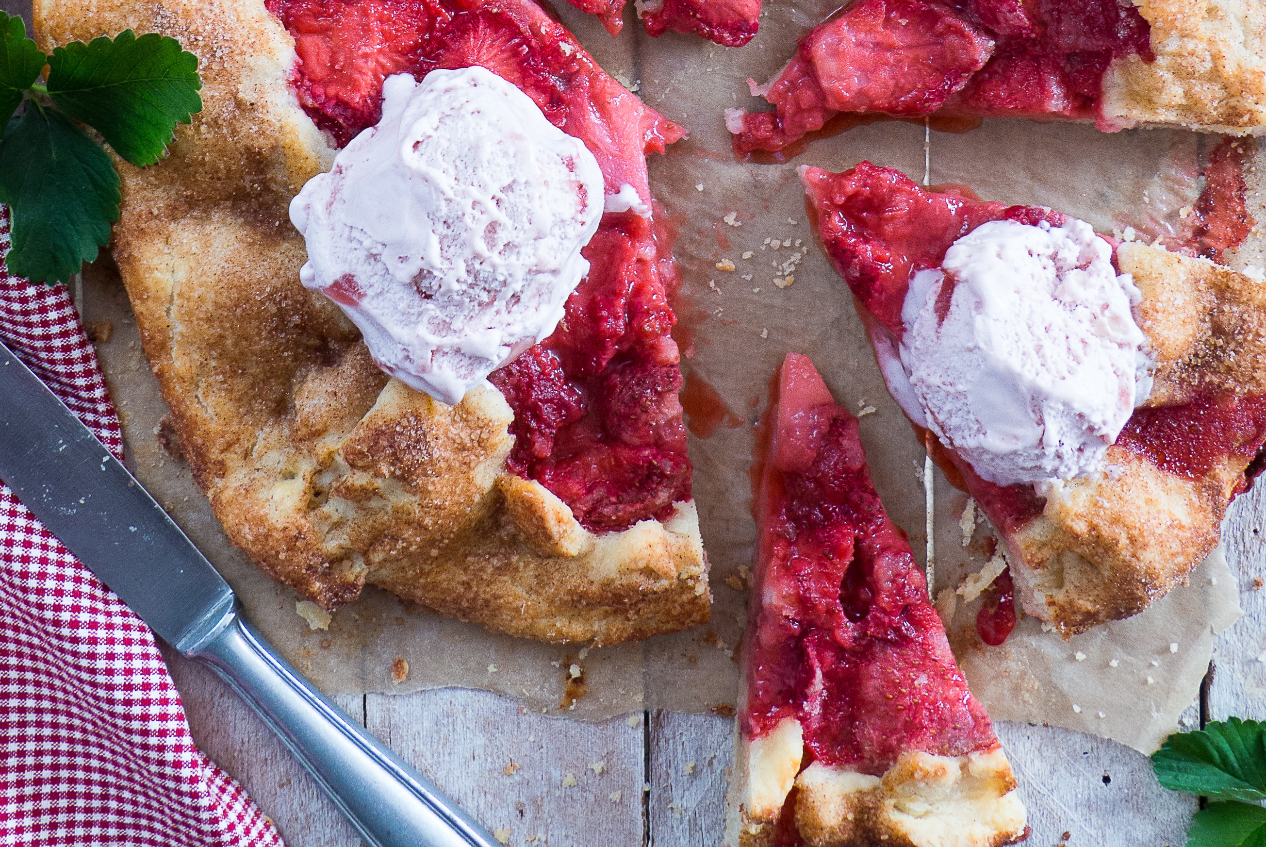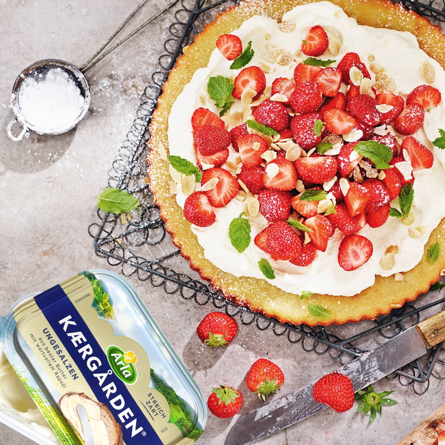 Skandinavische Mandeltorte mit Erdbeeren und Sahne