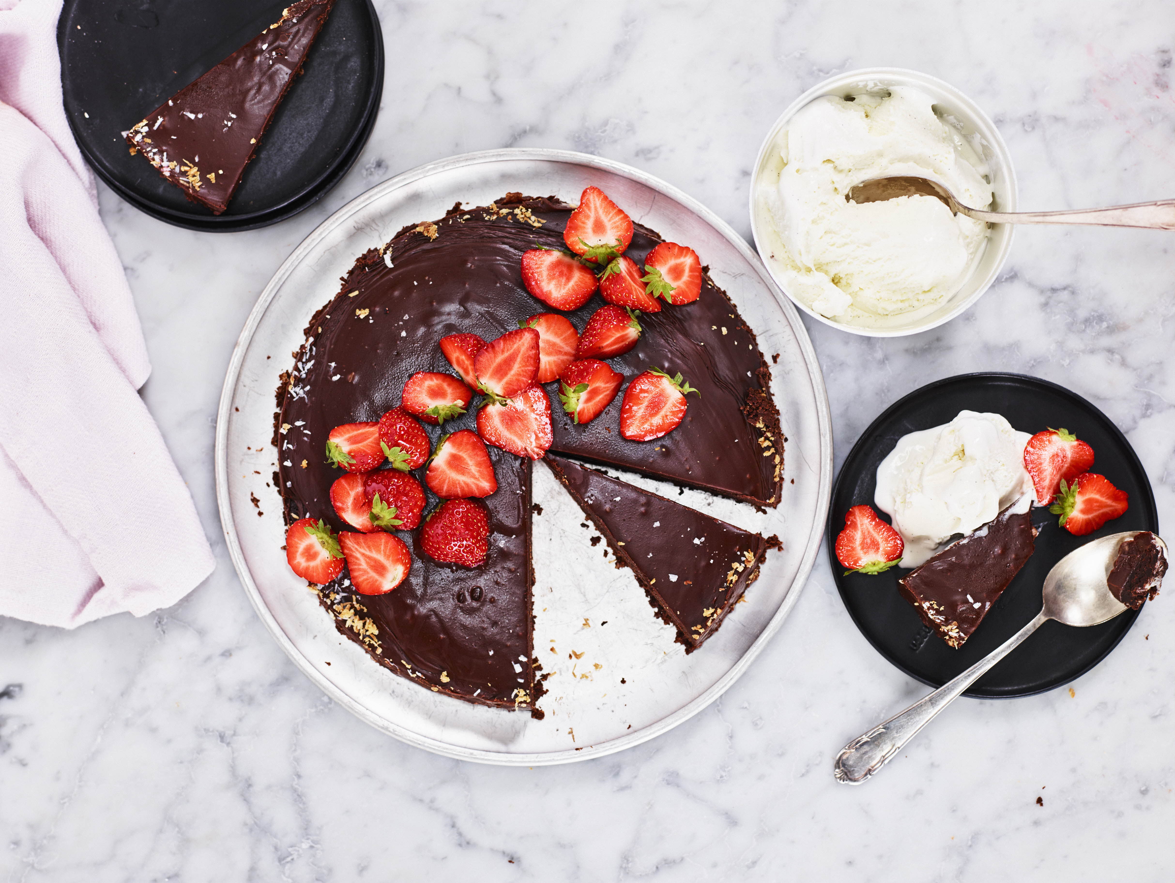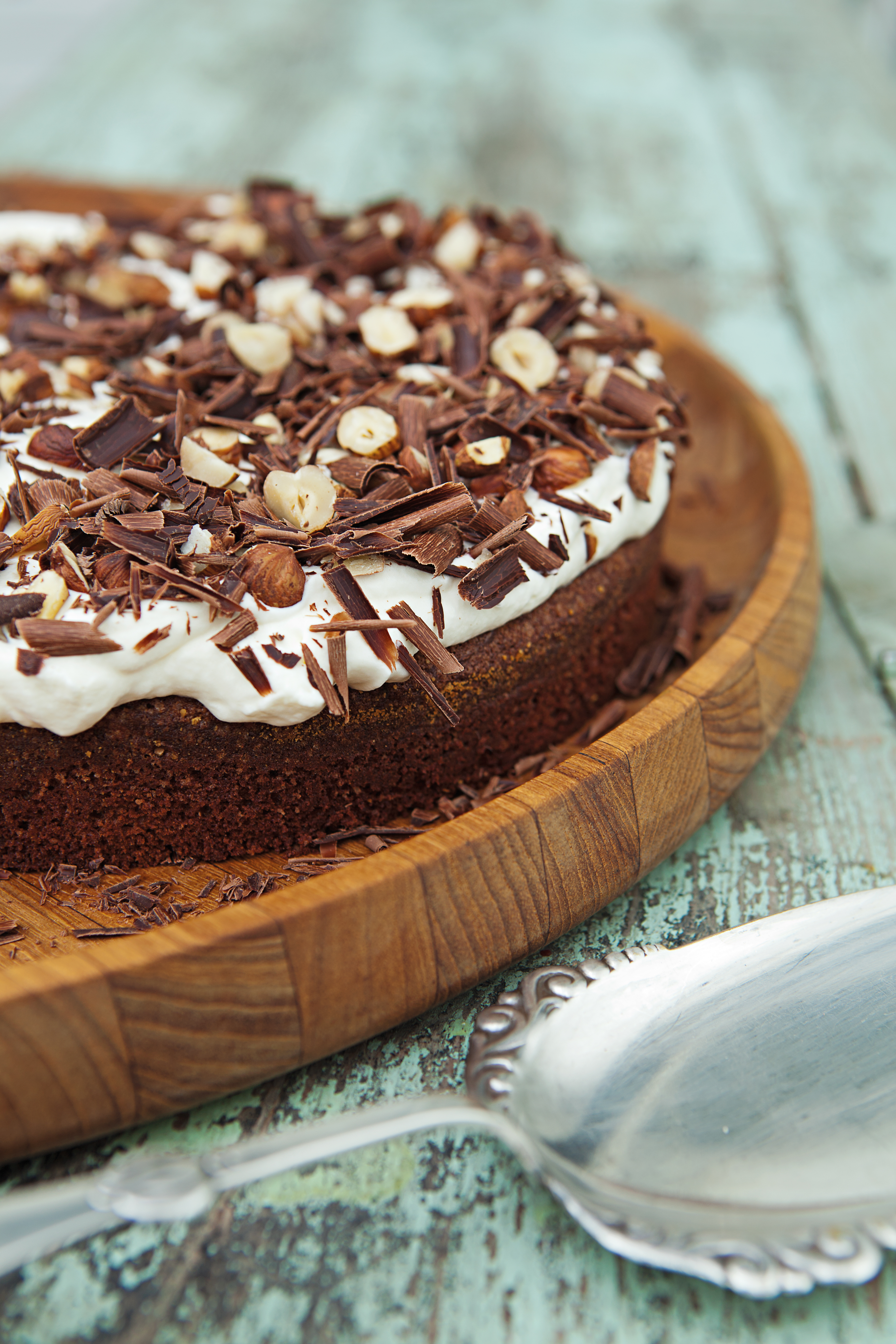 Schwedischer Schokoladenkuchen mit Kaffee und Ganache