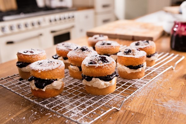 Mini Victoria Sponge Cakes mit Zitrone und Blaubeeren